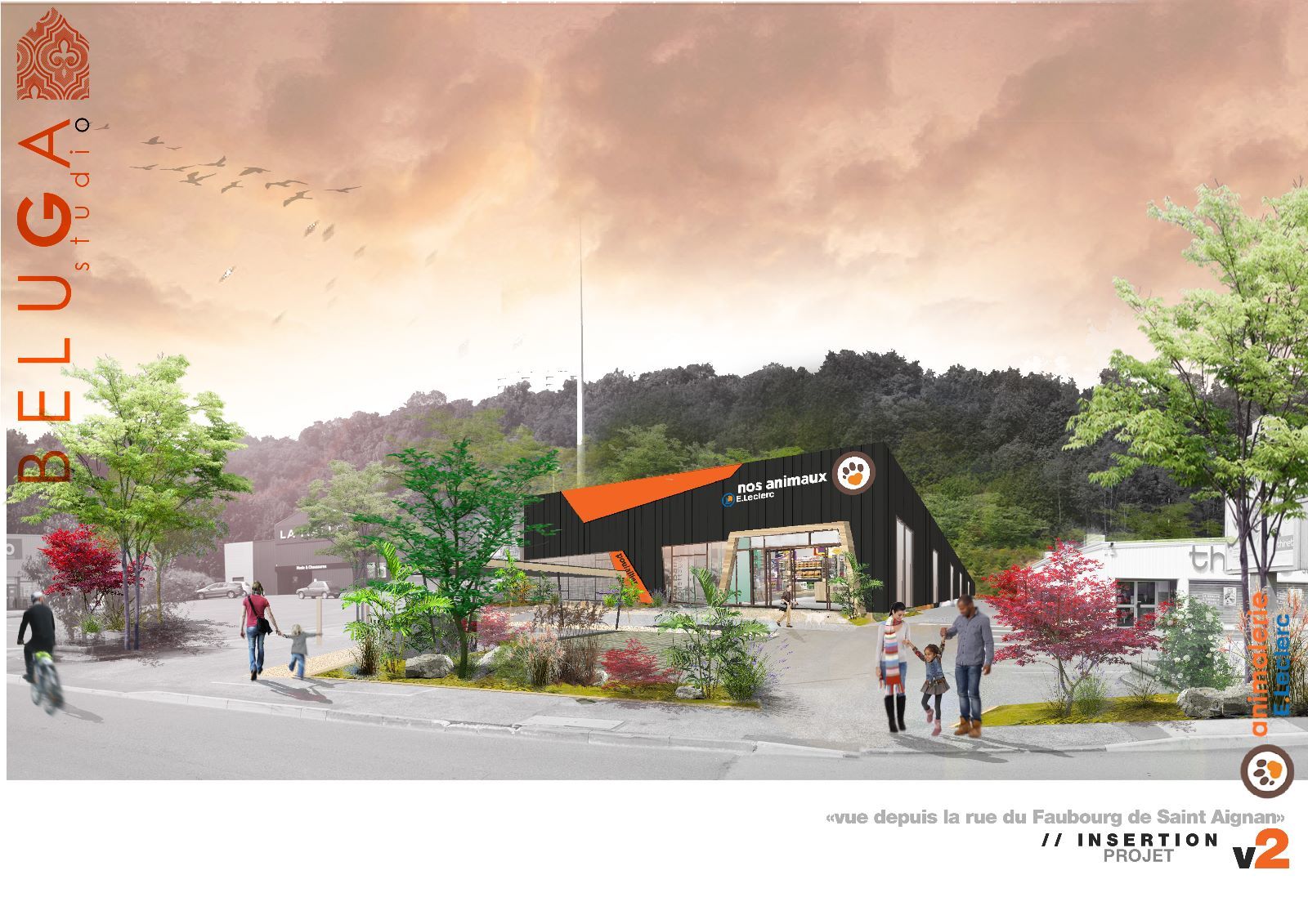 Création d'un animalerie E.Leclerc sur la base d'un bâti existant avec extension.