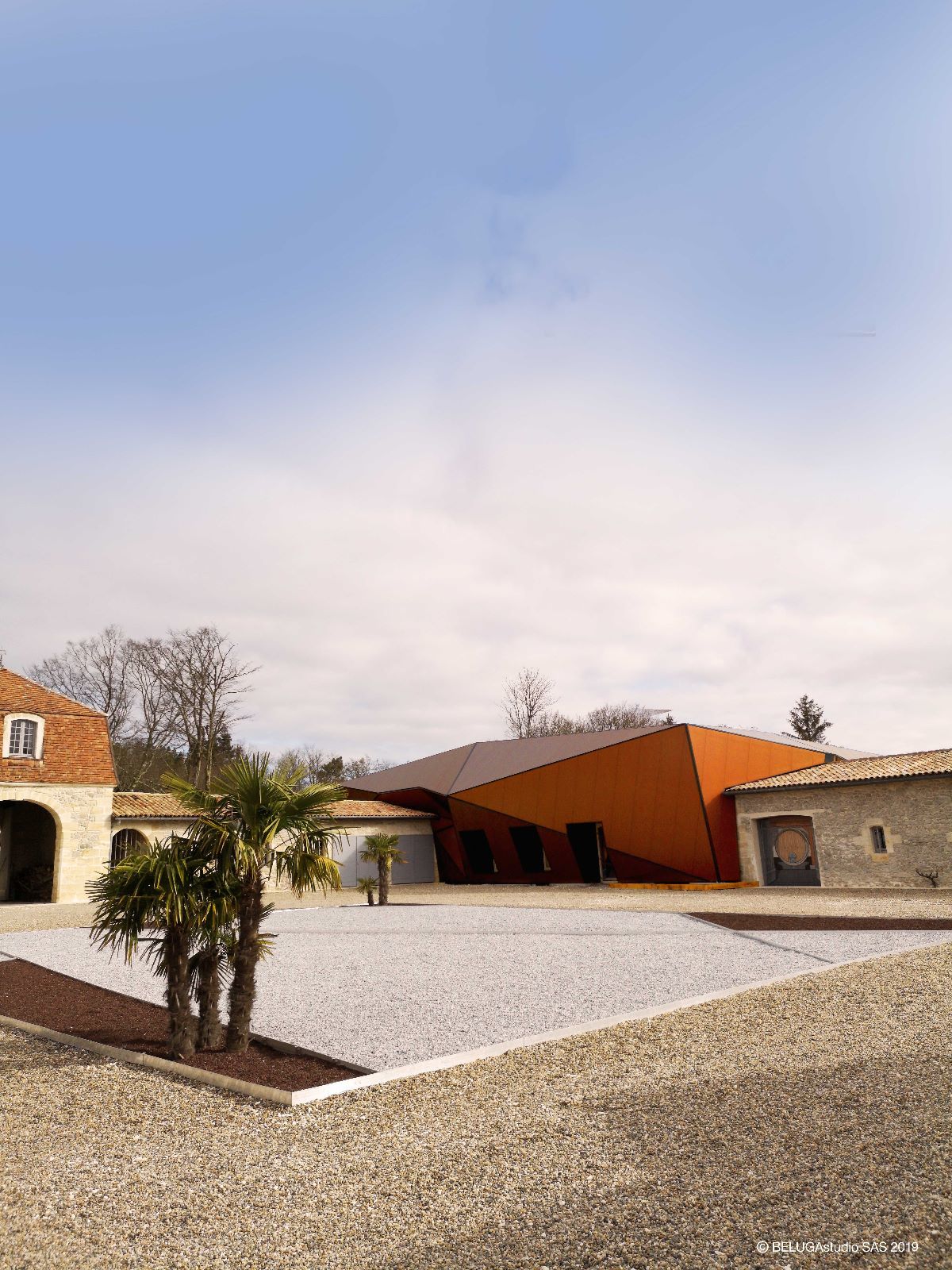 Nous avons souhaité par ce projet faire interagir un langage contemporain et original avec un intérieur ancien d’aspect rustique. Nous voulions surprendre une première fois par l’aspect extérieur de la « carapace ». Puis en la pénétrant, se laisser surprendre à nouveau par la découverte rassurante d’un chai centenaire et sauvegardé à l’intérieur.